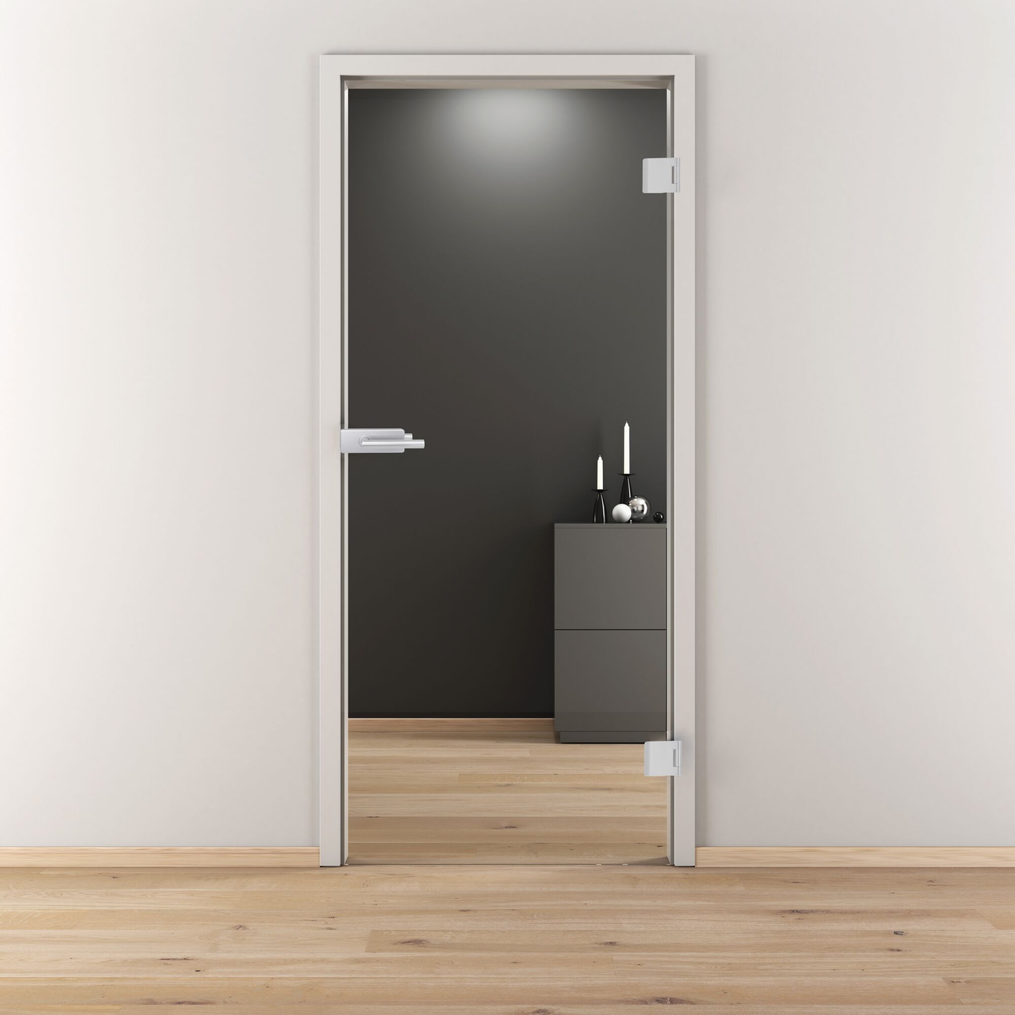 Bei uns findest du Schiebetüren, Drehtüren und herkömmliche Glastüren mit Scharnier. Außerdem hast du natürlich die Wahl zwischen links- und rechtsangeschlagenen Türen.
