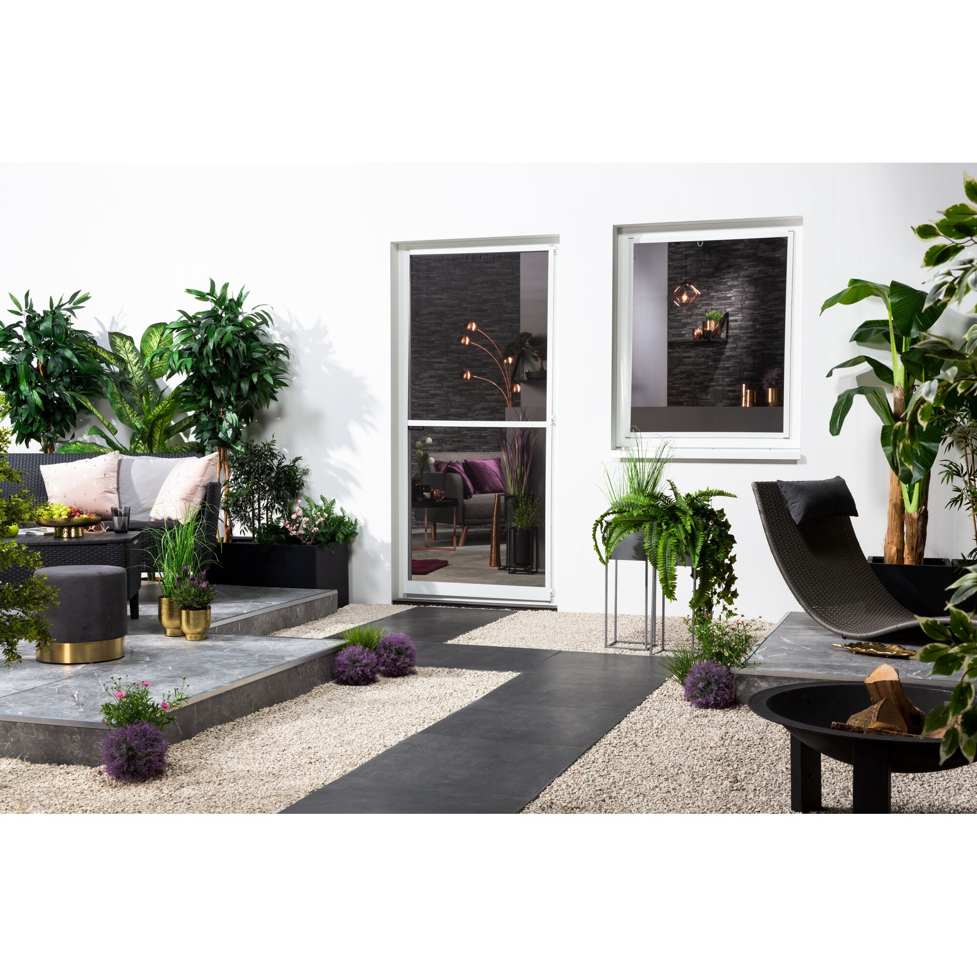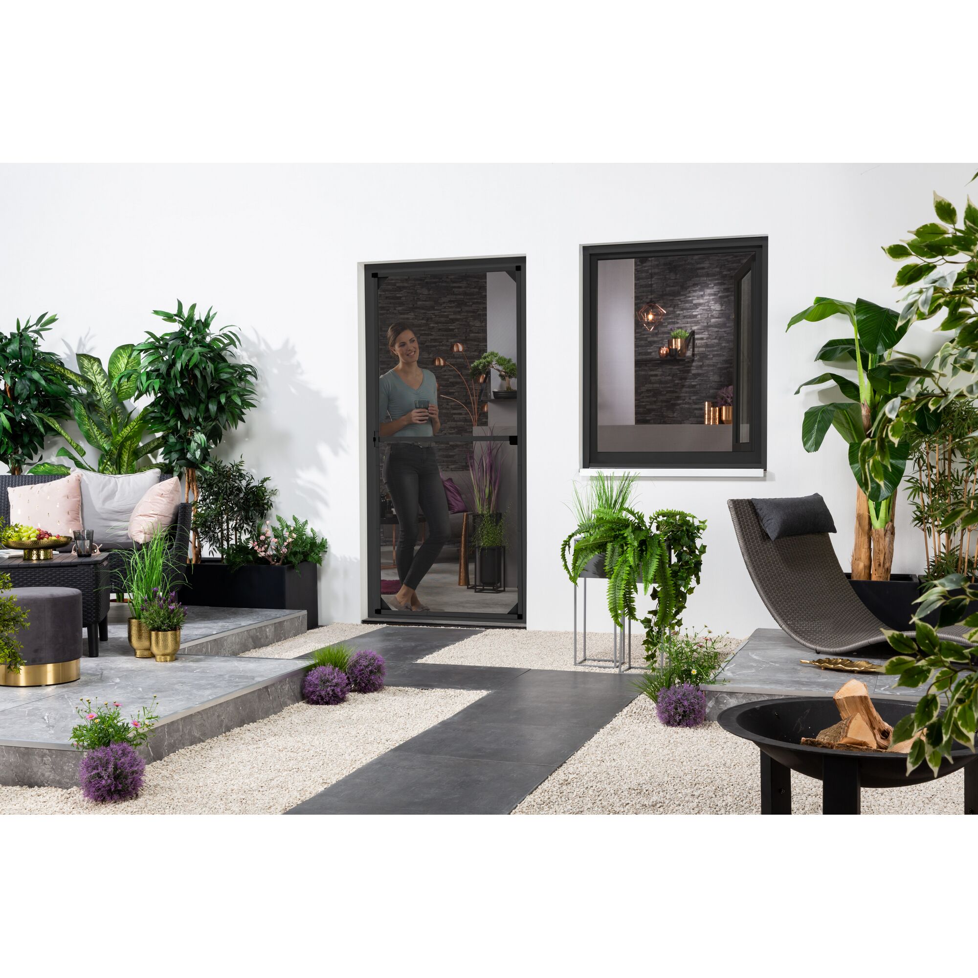 Fliegengitter für Türen gibt es in unterschiedlichen Varianten. Sehr praktisch sind zum Beispiel Fliegengittertüren, die du wie eine normale Tür öffnen und schließen kannst, während Plissees einfach zur Seite geschoben werden. Durch einen Lamellenvorhang gehst du sogar einfach hindurch. Die Rahmen für die Türen und Plissees bestehen entweder aus Aluminium oder aus PVC. Bei der Farbe der Fliegennetze habst du in der Regel die Wahl zwischen Weiß, Silber und Anthrazit. Es gibt aber auch Fliegengitter aus Alu, die wegen ihrer modernen Optik sehr beliebt sind.