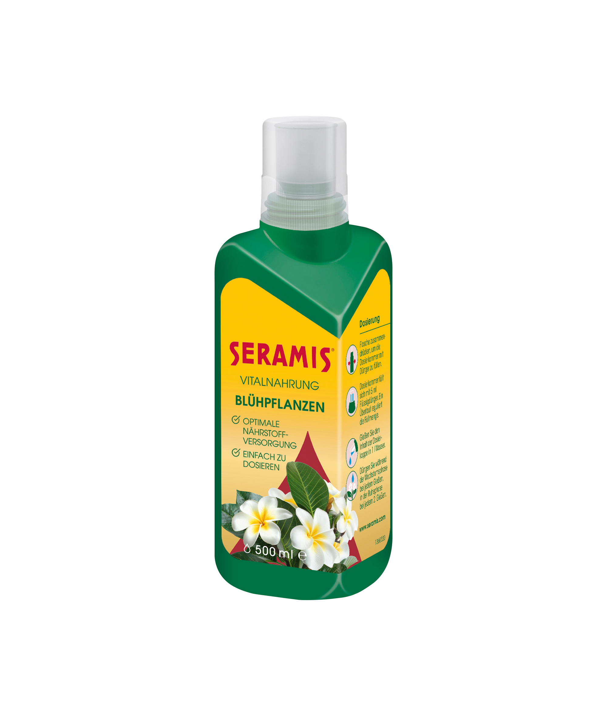 Unterstützen Sie das Pflanzenwachstum und die Pflanzengesundheit mit der Vitalnahrung für Blühpflanzen von Seramis. Ins Gießwasser gegeben, versorgt sie Ihre grünen Freunde kontinuierlich mit allen lebensnotwendigen Nährstoffen und Spurenelementen. Dank der Dosierkappe lässt sich die Menge immer genau bestimmen, die für alle Pflanzen nötig ist. So können Sie sich an einer lang anhaltenden Blütenpracht erfreuen.